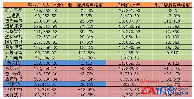 国内节能上市公司业绩情况