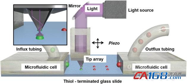 据了解,组成该聚合反应的几个部分——单体、光引发剂和溶剂——会流入拥有一个尖端阵列的微流控室。每个阵列大约有1.5万个聚二甲基硅氧烷的角锥状物以80微米的间隔排列,会使光线照到它们身上,这种光会启动反应,在下面的表面上制作刷状聚合物的图案。如果要用不同的化合物成分组成相邻的图案,只需移动这些尖端即可。然后再将新的单体溶液引入这些微流控室,并重复这一过程。据称,尖端位置还控制着打印对象细部的位置,光照射时间决定着聚合反应的程度,也就是对象高度,而单体标识决定着化学成分。