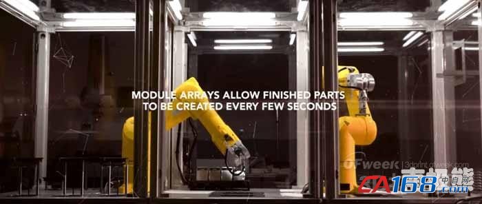 Figure 4系统把工业机器人臂当作第一阶段的3D打印机,用机械臂的末端作为打印平台,快速将3D打印对象从一大桶液态光敏树脂中逐层固化拉出,这个过程速度相当快。据称这主要是由于使用的光源和树脂之间的一种专业膜发挥了作用。尽管这种神秘的膜具体细节尚未披露,不过估计原理上可能跟Carbon公司的高速3D打印技术CLIP有点类似。在打印过程中,多出的材料可以在打印对象被冲洗和进一步固化之前进行回收。由于这个过程是可扩展的,因此从技术上说可以创建一个该设备的阵列从而实现SLA部件的大规模制造。3D System还专门为该系统开发了专用的光敏聚合物,据称该材料拥有非同一般的强度、耐磨、耐温差、生物相容性和弹性等性质。