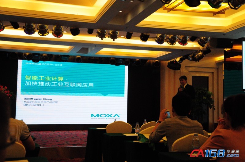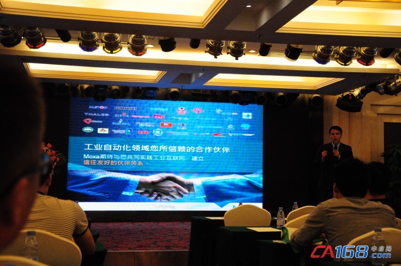 下午1点30分, 石壁渊先生首先上台做了主题为“智能互联•助力工业互联网新世纪”讲演,为我们精彩地讲述了Moxa眼中的工业互联网,以及Moxa将在工业互联网时代扮演的角色。Moxa眼中的工业互联网硬件分为应用层和设备层,应用层是具体的生产机器,设备层是指监视器,感应器,运输等支持生产机器运行的一系列产品,应用层和备层之间的联网构成一个生产体系,这个体系与决策层以及外网的连接在一起便是一个完整的工业体系,这个完整的工业体系之间的连接称为工业互联网,而Moxa未来将致力于解决应用层与设备层之间的联网问题,这既是基于公司已有的技术和产品,也是公司未来的研发方向。
