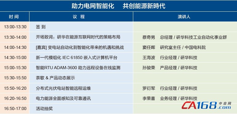 研华科技作为工业计算机领导品牌, 在顺应能源互联网大趋势下,提供高性能电力专用计算平台、通讯及采集分析等产品,让您快速进入电力智能化设备市场。我们将结合在全球电力与能源、物联网的经验,与您共同分享研华创新产品、技术及全球电力能源的新机会,并希望与您共同探讨智慧电网新的趋势。
