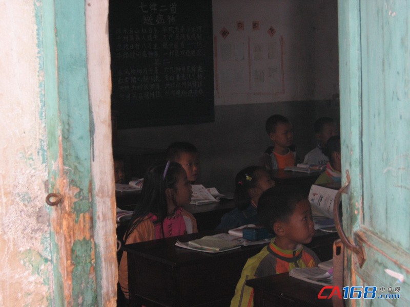 破旧的教室和认真上课的学生