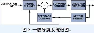 机器人的移动通常是从管理机器人总体任务进度的中央处理器发出位置变化请求时开始的。导航系统通过制定行程计划或 轨迹以开始执行位置变化请求。行程计划需考虑可用路径、已知障碍位置、机器人能力及任何相关的任务目标。(例如,对于医院里的标本递送机器人,递送时间非常关键。)行程计划被馈入控制器,后者生成传动和方向配置文件以便进行导航控制。这些配置文件可根据行程计划执行动作和进程。该运动通常由若干检测系统进行监控,各检测系统均产生反馈信号;反馈控制器将信号组合并转换成更新后的行程计划和条件。图2是一般导航系统的基本框图。