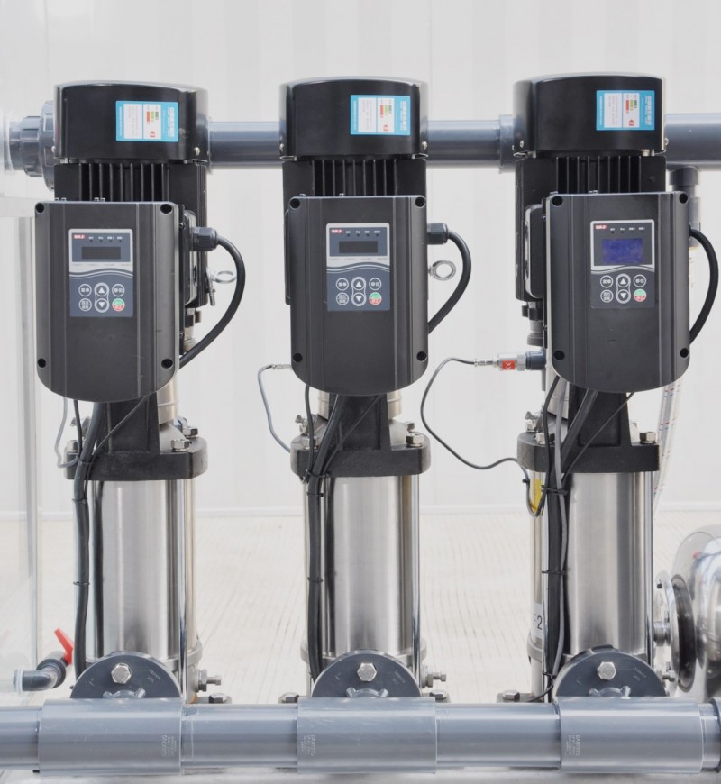 3.全变频供水系统:每台水泵单独配置一台变频器,变频器可以直接安装在水泵接线盒上面,接线方便简单,成套设备看起来高端大气。