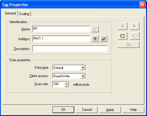 选择好OPC Server设备后,可以在KEPServerEx软件中添加需要监控的S7-300 PLC中Address值,设置好“Tag Properties”,如图5所示,添加MW1.1,从而监控M区数据。至此完成OPC Server的所有配置。有关OPC Server的使用如有问题,可咨询Kepware公司。