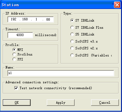 以下通过简单的通讯测试,验证通讯的状态,主要进行两个测试,一是通过STEP7内部测试程序,测试通过netLINK与S7-300的通讯状态,二是利用OPC Client,连接Kepware OPC Server,测试netLINK与S7-300的数据监控状态。