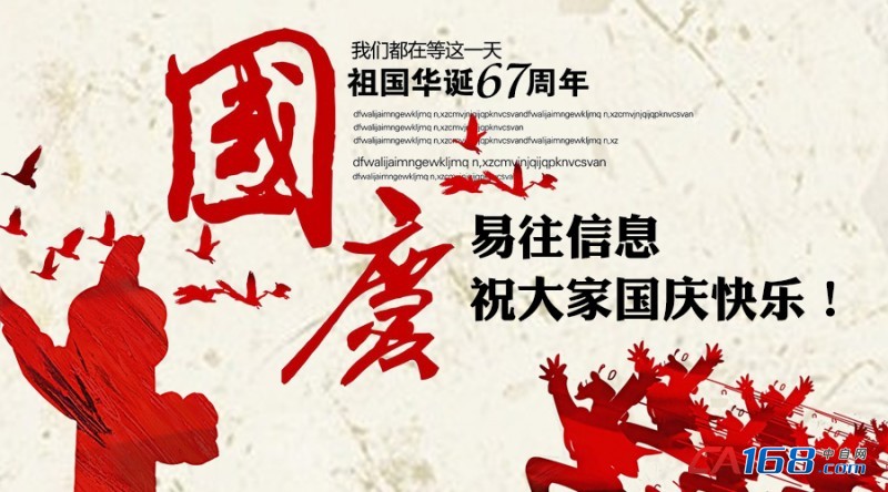 在国庆来临之际,易往信息祝大家国庆快乐!让我们共同努力,让祖国的制造强国梦早日实现,这将是我们献上的最佳礼物!