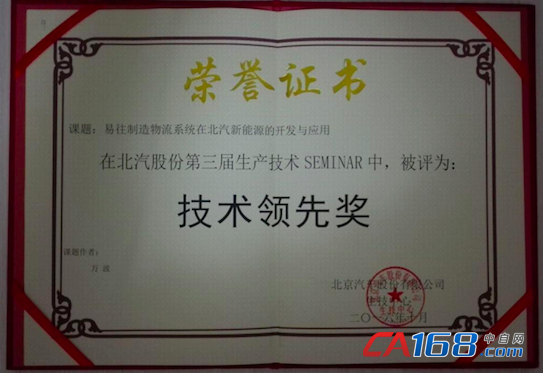 北京汽车股份有限公司自主品牌自成立以来,易往信息凭借成熟的产品和丰富的汽车行业经验成为北汽各分公司MES和WMS系统的核心供应商,先后为北汽股份株洲分公司、北京分公司、广州分公司、越野车分公司、镇江分公司,昌河汽车景德镇基地,以及北汽新能源采育基地、常州基地和莱西基地成功实施了MES和WMS系统,见证并帮助了北汽自主品牌的成长与壮大。在北汽新能源采育基地制造物流系统(MES&WMS)项目中,易往信息项目团队顶住压力,在时间紧任务重的情况下仅花了3个月时间就完成了系统上线工作,并在项目规划和实践上积极创新,在车辆过点扫描、工废料废提报、物料拉动、配送、成品管理等生产和物流环节大量使用了工业安卓系统手持终端进行业务操作,在来料检验、质量门检查等质量操作环节应用了工业平板进行质量问题的录入,减少了有线网络布线和工控机等部署,便于业务人员现场录入数据,也方便后续终端点的扩容。同时为北汽新能源开发的手机APP报表系统客户端(包括安卓系统和苹果IOS系统)也成功上线,使得中高层管理人员可以方便地了解企业计划、生产、物流、成品、质量等业务运行情况和宏观指标数据,方便领导实时掌握现场情况,发生异常情况时可以第一时间进行处理。易往信息在该项目的成功实施和创新得到了北汽各部门和分公司的一致认可,以此项目为主题的课题论文也得到了评委会的高度评价,并授予本届生产技术研讨会获奖课题中唯一的信息系统类技术领先奖。