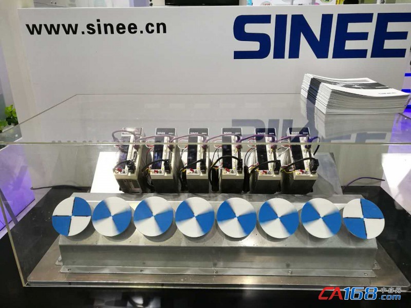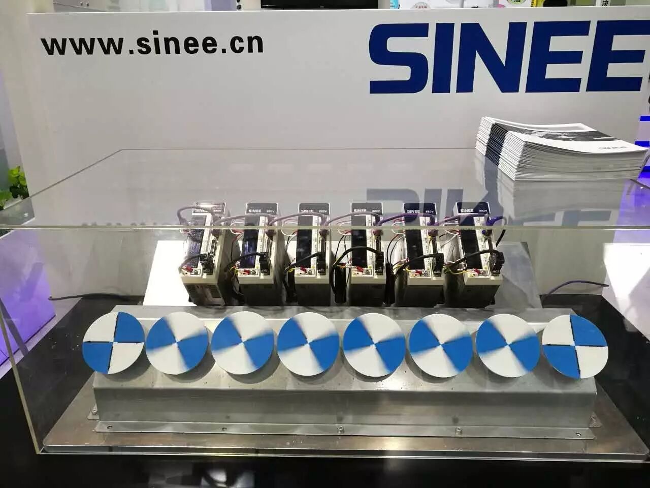此演示系统同步周期1ms,同时控制11台伺服做不同的运动。系统中正弦电气两个EA100N EtherCAT总线型伺服驱动,紧密配合的齿轮在运行中插拔,展示优秀的同步性能。