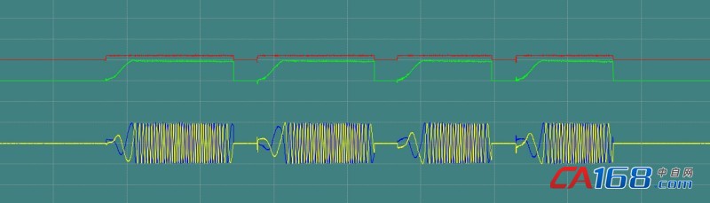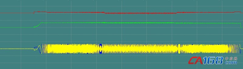 在施加150%额定负载下,AC200对电机进行频繁起停控制,电机启动过程平稳,过冲电流小。(黄色为U相电流、蓝色为V相电流)