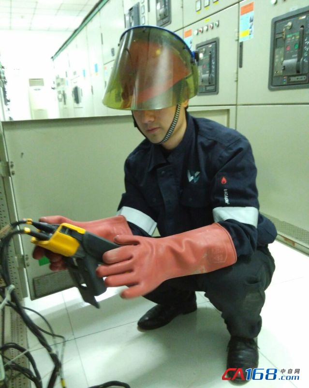福禄克工程师亲自携带福禄克三相电能质量分析仪Fluke 435 II来到工厂,进行现场电能监测。福禄克工程师换上专业工作服、佩戴安全帽、高压防电弧面罩、10000V高压绝缘手套等装备,详细地进行了客户关心的电压电流频率、功率、谐波、功率因数等测试。