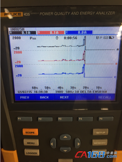 测试方案:客户采用Fluke 435II电能质量分析仪,通过浪涌电流测试功能,实时监控冲压设备的电流波动情况。