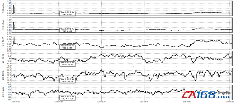 长安铃木汽车涂装车间发现了由于供电变频器故障导致拖轨动力电机断电,没有将白车身从电镀液中拉出的故障,致使白车身报废,单次损失3万左右,判断原因可能是由于电压问题造成的。通过电能质量分析仪Fluke 435II在客户现场为期1周的检测,发现客户从点电压跌落的现象。