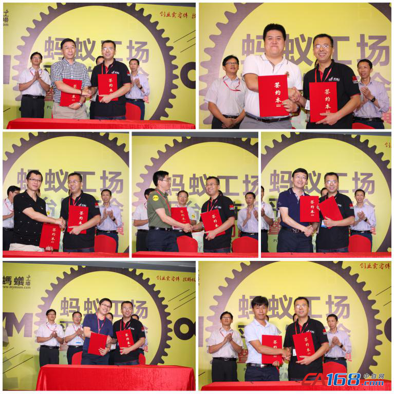 在发布会尾声,蚂蚁工场总经理李进涛代表公司先后与北京航空航天大学深圳研究院、深圳华意隆电气股份有限公司、深圳大族电机科技有限公司、牧气精密工业(深圳)有限公司、东莞贺尔碧格自动化科技有限公司、东莞市聚益传动设备有限公司、深圳市欣瑞涛科技有限公司进行战略签约。未来工业自动化行业的发展必定离不开互联网、离不开电商行业。要在工业4.0时代发展大流中平稳健康的发展,蚂蚁工场离不开战略合作伙伴的支持,相信在未来,蚂蚁工场V1.0将在工业自动化领域拥有不俗的成就。