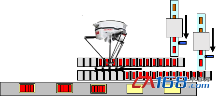 ABB的ICC技术适用于标准外形物料需要经过按一定数量整理后批量处理的应用。一般情况下,在“箱装”应用中,上料输送线将以高速率频率把对象放到步进输送线上。之后,机器人将拾取步进输送线上的对象,然后将其放到下料输送线上。