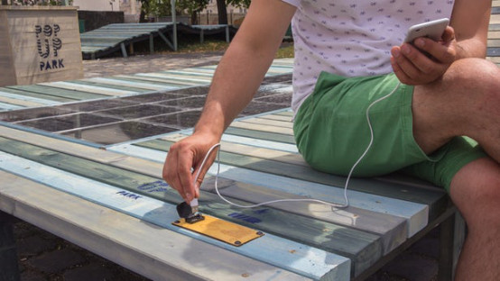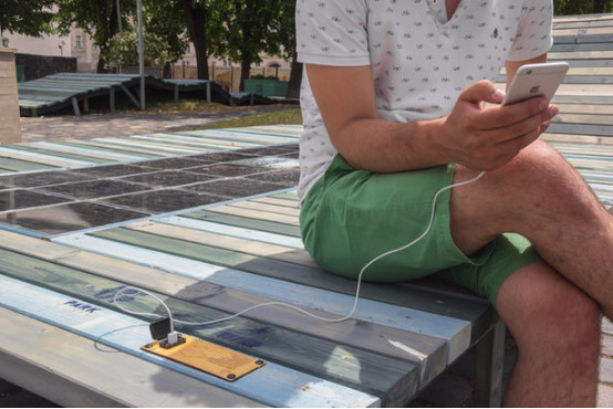 步行道上的露天座椅为行人们提供了暂时的休息放松环境,在各大商圈中,这些步行道和座椅随处可见,给路过的行人带来了很大的便利,不过近日匈牙利布达佩斯一初创公司Platio却带来了一个振奋人心的消息,经过近几年的潜心研发,他们推出了一条自带太阳能系统的嵌板步道,可以将吸取到的太阳能转换为电能,而这些智能嵌板最近已经被铺置到购物中心门前,他们还在街道周围安置了许多露天座椅,而太阳能步道所带来的电能将会源源不断的补充进这些露天座椅的电源插座上。