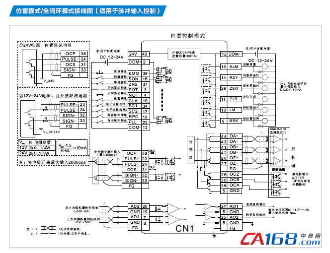 若不需要方向信号,只需接38脚OCP接24V+和24脚PULSE-接PLC脉冲输出。