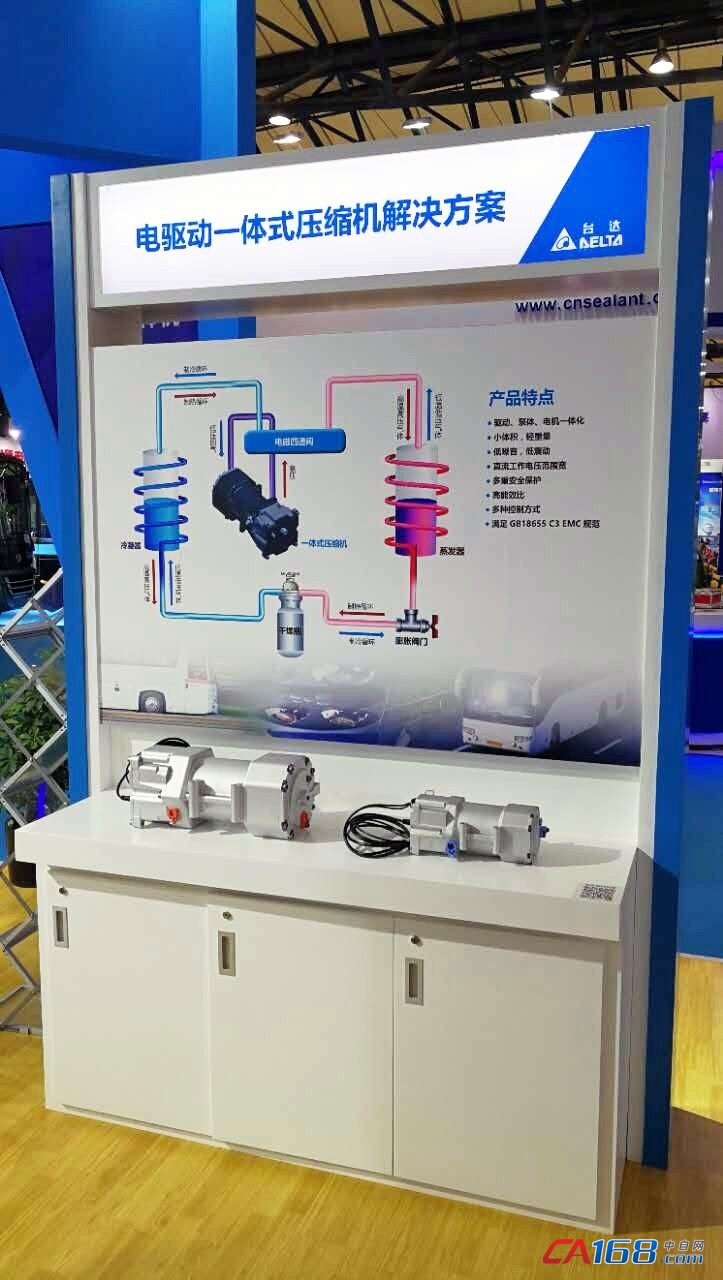 变频驱动压缩一体机:整合台达变频器和全封式涡旋压缩机为一体机,实现变频驱动、泵体、电机一体化方案,拥有舒适性更好、维护成本更低、使用寿命更长的优点。同时,压缩机还具有体积小、重量轻、噪音低、震动低、控制方式多样、能效比高等特点,并具有较宽范围的直流工作电压,安全性高,更符合新能源汽车空调使用的高标准需求。