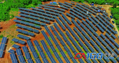 绕着弯弯曲曲的山间小道,记者跟着村干部走了约2公里,来到联新村后面的半山坡,562根水泥柱撑着3394片太阳能电板,壮阔而整齐的阵容出现在记者眼前。这里是该村占地17亩的光伏发电基地。