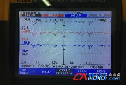 运用 Fluke 435-II 瞬变功能及浪涌电流来监测设备运行情况,具体测试结果如下: