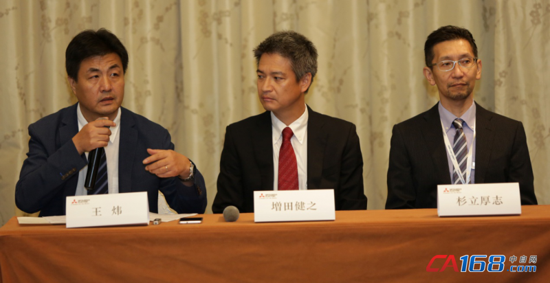(左至右)大中国区三菱电机半导体高频光器件应用技术课经理王炜先生、三菱电机半导体亚洲区销售总监増田健之先生及三菱电机光器件部总经理杉立厚志博士。