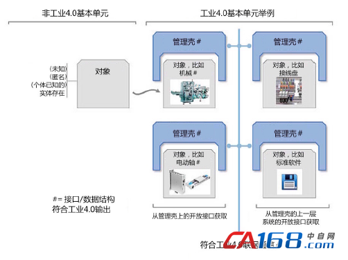 在生产环境中的硬件单元(如一台机械装备)或软件单元,其所有的相关数据都包括该单元的虚拟映射。这种虚拟映射存放在管理壳内。这使得网络化制造完全有了实施的可能性。