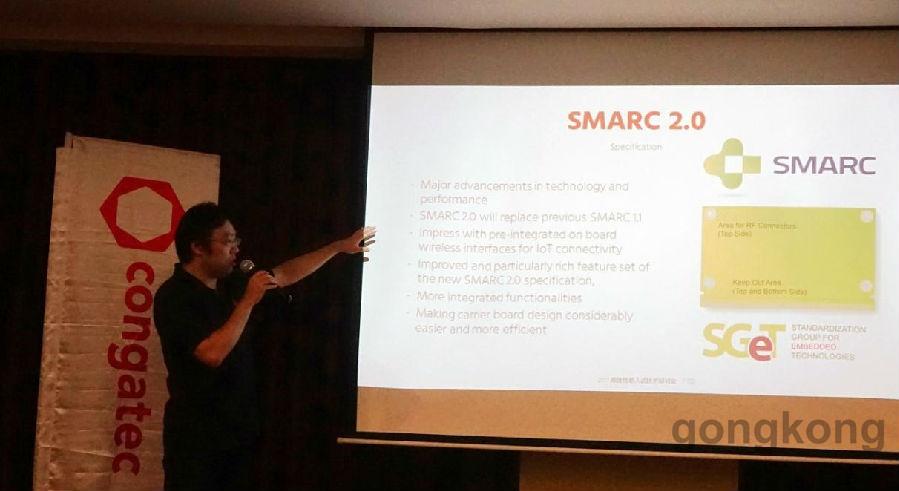 研讨会还详细介绍了最新模块标准规范SMARC2.0。康佳特技术应用工程师储圣杰表示,SMARC2.0是去年才正式推出,尺寸较Qseven小,有较新的影像传输接口,例如MIPI-DSI 与DP++,适用于小尺寸且对影像输出有高度要求的应用。相较于Qseven与COM Express Type10,这三种模块都属于小尺寸模块,适合低功耗手持装置的应用。现在,客户可以针对其应用需要有更多的选择。此外,也介绍了基于英特尔Apollo Lake处理器平台的各种规格尺寸模块与单板,Apollo Lake 处理器平台提供更快速的多媒体处理性能,支持更多集成的I/O端口,减少外部Hub需求,可简化系统设计并节省开发成本。其中,首款SAMRC2.0模块conga-SA5不仅设立了低功耗处理器的新标准,其预先集成的板载无线端口,支持2个千兆以太网络,可通过精确时间协议(PTP)达成硬件实时支持,更是面向物联网连接的最佳选择。