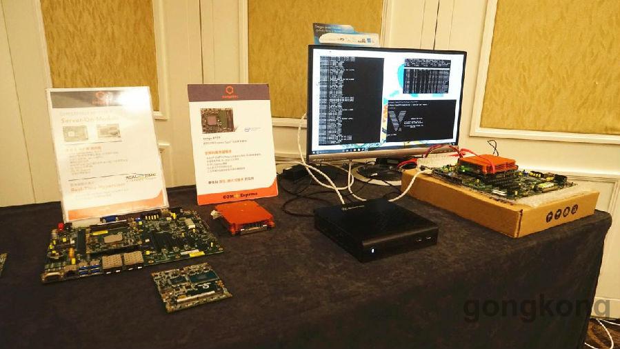 现场还展示了COM Express Type7的实际应用案例。conga-B7XD Type7模块搭配RealTime System 的软件,该方案可同时执行4个操作系统。物联网应用中常常需要利用同一台机器实时处理多个应用程序,该方案对此非常有帮助。