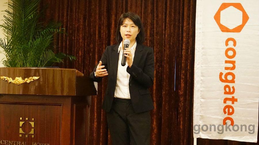 (康佳特销售总监林美慧表示康佳特致力于简化嵌入式的应用协助客户创造嵌入式新局面。)