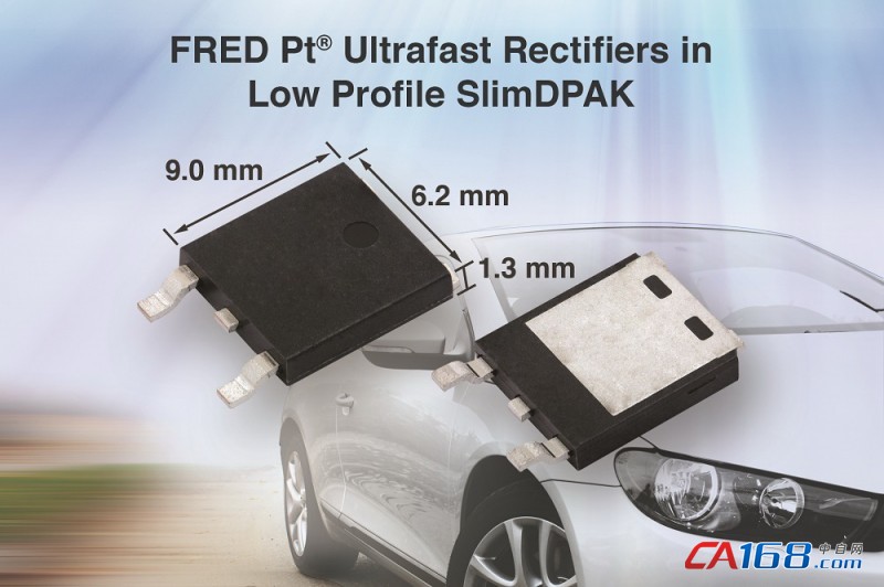 宾夕法尼亚、MALVERN — 2017年11月10日 — 日前,Vishay Intertechnology, Inc.(NYSE 股市代号:VSH)宣布,推出13款200V到600VFRED Pt®超快恢复整流器。均采用eSMP系列SlimDPAK(TO-252AE)封装。每种产品都有汽车级和商用/工业级版本。Vishay Semiconductors整流器比传统DPAK(TO-252AA)封装的器件高度更薄,热性能更好,具有更高功率密度和更高效率,可用于汽车和通信应用。