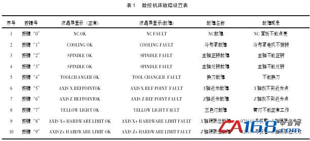 通过遥控器按键的定义来实现数控机床故障设置与排除,按键的具体定义如表1所示。