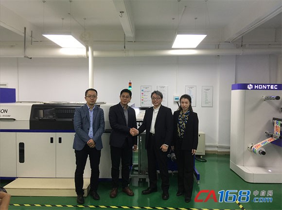 随后,梁坚经理分享了爱普生在数码行业的历程和贡献。爱普生始终本着“挑战与创新”理念,秉承“科技+本地化”战略,立足中国市场,为用户提供创新高效的产品和解决方案。接下来,爱普生(中国)内田康彦先生、袁雪女士、梁坚先生和广州鸿运总经理赵劲豪先生共同发布爱普生新品SurePress L-4533AW数码标签印刷机,正式揭开新品面纱。