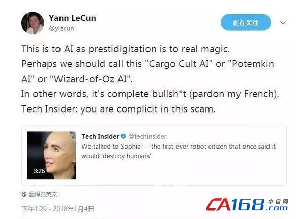 YannLeCun 终于还是没忍住,站了出来,怒喷机器人索菲亚是一场彻头彻尾的骗局。