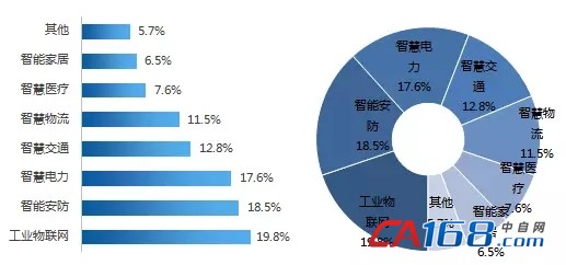 赛迪顾问股份有限公司副总裁李珂表示,在2016年细分应用领域中,工业物联网占据物联网市场的19.8%,位居所有行业第一位。可以说,“物联网在工业中的应用,已成为物联网最重要的领域。”