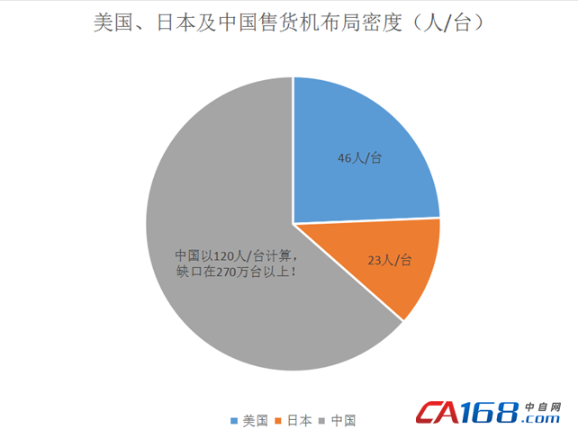 目前,国内售货机多数投放在经济较为发达的地区,无论是从绝对数量还是布局密度(一台售货机涵盖的人数),与欧洲、美国及日本等发达国家及地区相比均相差甚远,如果将售货机布局密度定为120(即一台售货机涵盖人数为120。),按发达地区人数3.5亿计算的话,市场容量大致在290万左右,而目前自动售货机已布局的点位不超过20万,也就是说整个国内市场起码还需要270万台以上的售货机去填补空白,整个市场前景广阔!