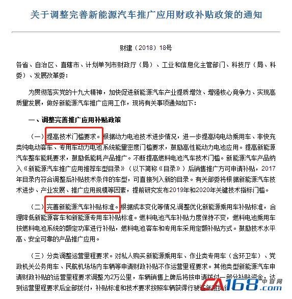 先从2018年最新的补贴政策来看。今年2月,财政部、工信部、科技部、发改委发布《关于调整完善新能源汽车推广应用财政补贴政策的通知》,根据通知内容,政府不再仅仅按照续航里程决定新能源汽车补贴金额,而是引入了电池能量密度和能耗系数等新要求。