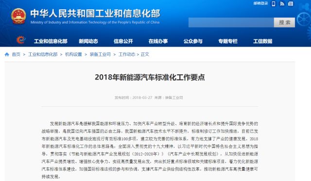 以下为《2018年新能源汽车标准化工作要点》全文: