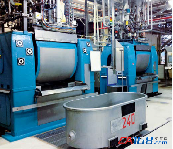 根据现场规则,和面机设备由两名工人进行操作,每台设备的产能大约800公斤,它装备了旋转混捏工具的搅拌鼓,从前端进行装料和卸料。
