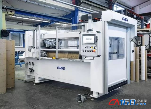 加工设备处理的硬纸管重量可达50公斤,外径750毫米,长约两米,由轴心驱动旋转。两个外置导辊的设计用以辅助稳定的旋转过程。