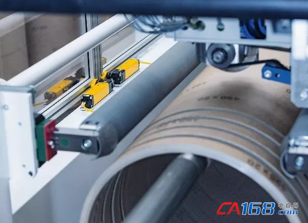 由于安全门必须能够承受硬纸管异常运动下的机械应力,因此方案的第一步就是寻找合适的安全门锁定产品。皮尔磁以其新型PSENmlock安全门系统作为解决方案:这款坚固耐用的紧凑型产品能够提供高达7500N的保持力以应对外界的冲击。