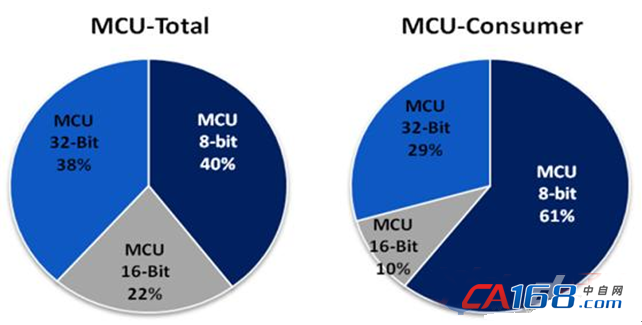 MCU经过不断的研究和发展,经历了从4位、8位、16位到现在32位的发展史。到目前为止4位MCU基本退出历史舞台。8位MCU自推出后长期处在主流地位,16位MCU的功能及地位比较尴尬,目前MCU市场份额已很少。而32位MCU主要面向高端应用,其优势为强大的处理能力,现已有取代8位MCU的态势了。