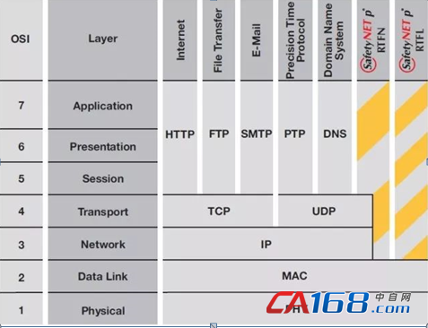 ISO/OSI 的 7 层参考模型中的 SafetyNET p