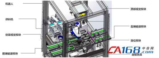工作站采用模块化设计,通过硬件模块化以及软件平台操作,可实现高兼容性和灵活性。利用软件平台预先导入的产品参数,可快速完成5.5-7寸手机背壳产品不同角度侧面辅料的贴附工作的部署;更换相应夹具可立即实现多种辅料的贴附;机器人视觉配合双CCD定位模组工作,最高贴附精度可达±0.1mm。