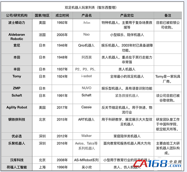 总体来说,双足大仿人机器人的风头一直被海外公司和研究机构占据,国内主要以项目研究为导向,在商业化领域鲜有动静。不止于美国波士顿动力(BostonDynamics),日本本田(Honda)等公司都在“人形机器人”项目上不遗余力地砸钱。