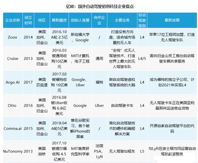 现在我们来看看国外专注研发自动驾驶技术的科技企业有哪些特点。