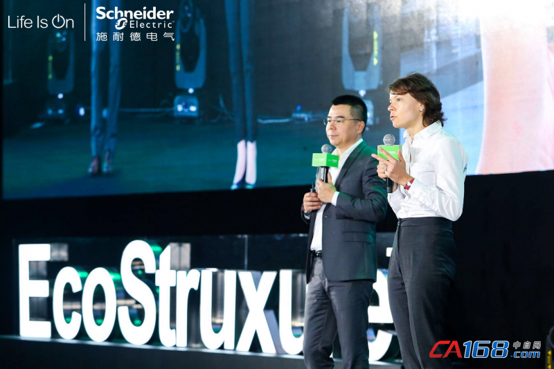 施耐德电气高级副总裁,合作伙伴事业部中国区负责人李瑞(左),及施耐德电气执行副总裁,合作伙伴事业部负责人Nadege Petit(右)为会议致辞